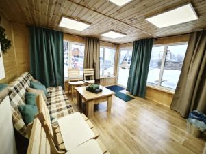 Стиль и функциональность: Дизайнерский ремонт, 4 спальных места, полноценная кухня (индукция, СВЧ, фильтрованная вода) и санузел с ванной прямо в доме.