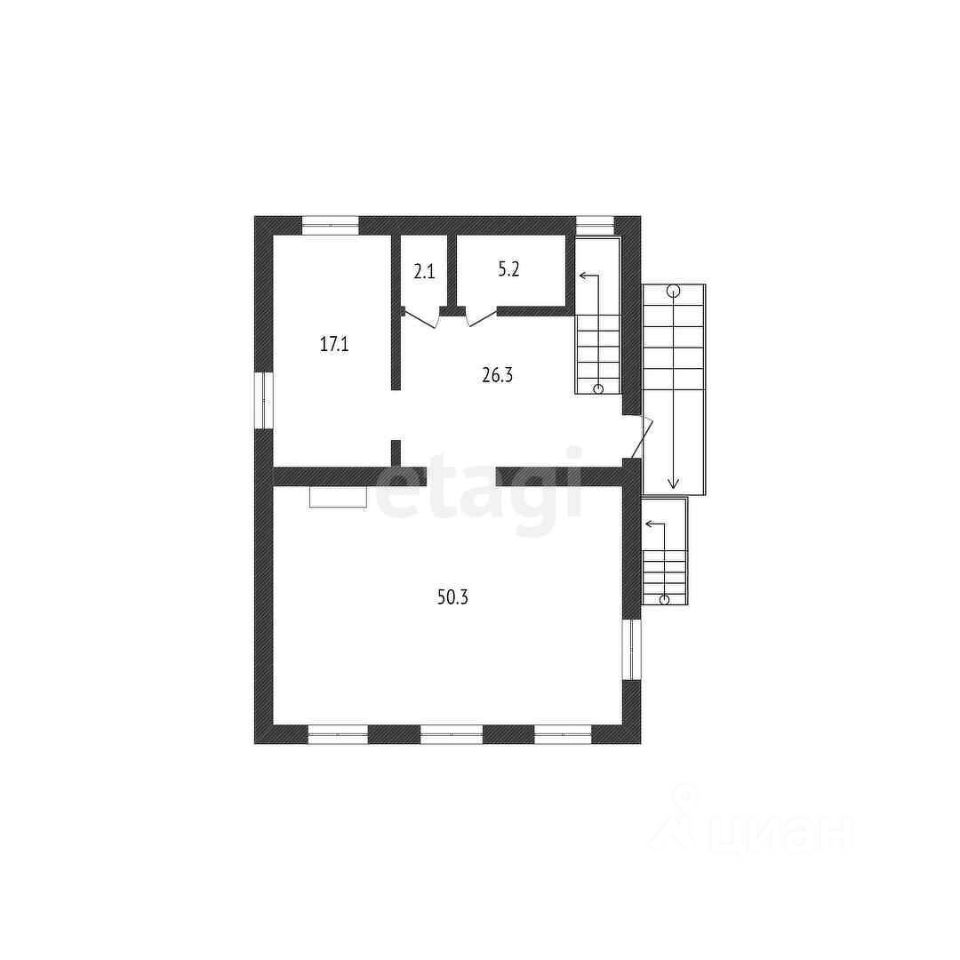 На первом этаже просторная гостиная с подогреваемым полом и действующим камином, удобная кухня и санузел.