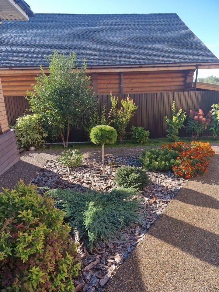 Двор благоустроен , с ландшафтным дизайном , на ровном участке проложены прогулочные дорожки и установлено уличное освещение по периметру всего дома , а так же подсветка дома . Есть зона барбекю и подсобное помещение для хозяйственных нужд.нaвeс на 2 машины , дровенник , туалет на улице.