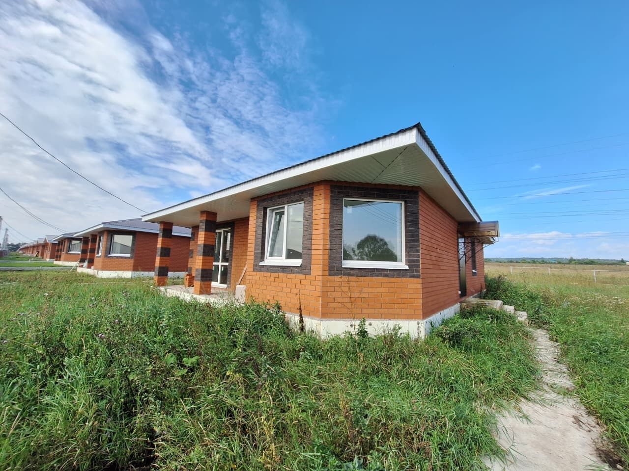 Отсыпанный щебнем подъезд к каждому дому, бетонированная дорожка от калитки до входной двери.