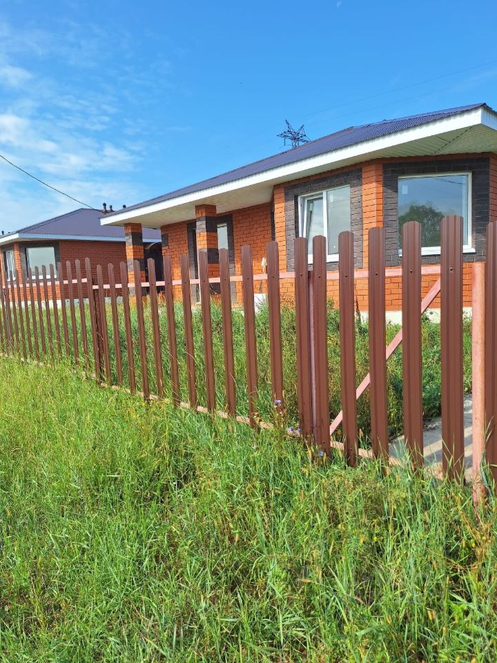 -Забор евроштакет по лицевой части дома;