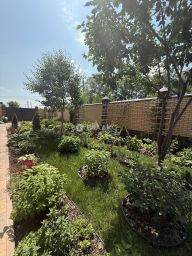 На территории участка расположена теплица, очень много цветов декоративных, богатый зеленый сад. Территория полностью облагорожена брусчаткой. Двор всегда чистый и сухой, имеется гараж с рольставнями.