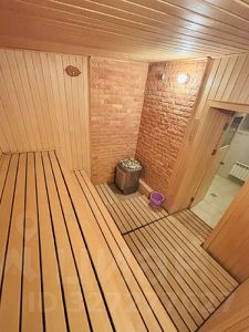 1 этаж: Просторная гостиная 50кв.м., прихожая 7 кв. м., кухня 17кв.м., котельная 4м, санузел, бассейн с сауной 70 кв.м.