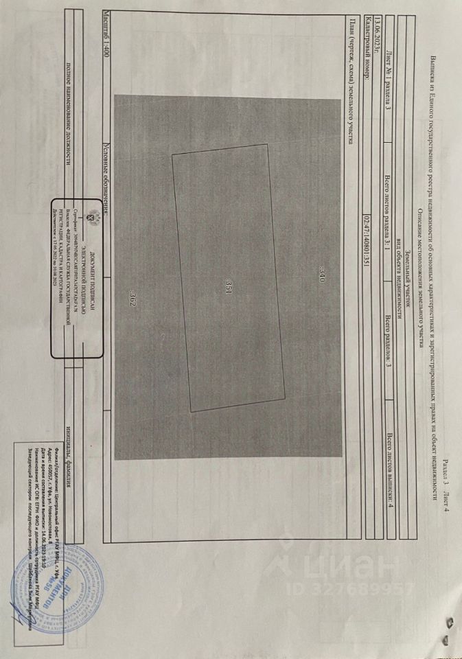 Кадастровый номер участка: 02:47:140801:351