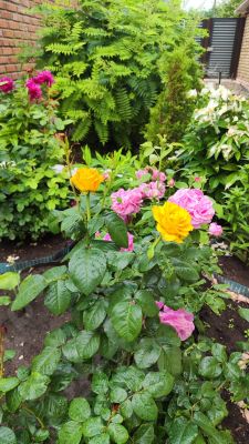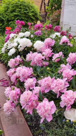 Ландшафт: Красивый ухоженный сад с фруктовыми деревьями, ягодами, цветами, теплицей и парниками.