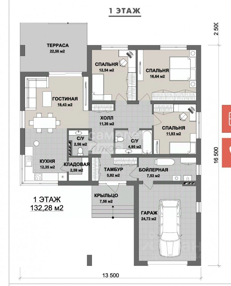 3 просторные спальни;