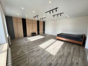 На первом этаже тёплый водяной пол во всех комнатах, стены отштукатурены и готовы к покраске или оклейке обоями. Матовые натяжные потолки с чёрными светильниками и треками.