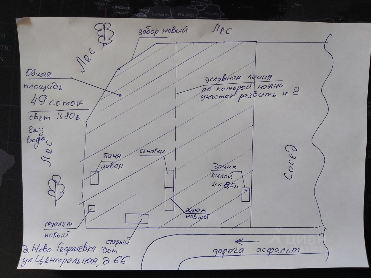 Продаётся земельный (ые) участок (и) в уютном и тихом месте деревни Ново-Георгиевка. Общая площадь 49 соток. На участке возможна разбивка и продажа на несколько участков (например, по 6-10-15 соток или по договорённости). Цена за сотку 42800 рублей. Подведено электричество 220/380 В. Есть забор. На двух участках есть деревянные дома. Вдоль забора проходит водяной коллектор. Неподалеку есть общий колодец водяной (можно брать воду оттуда).