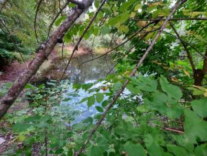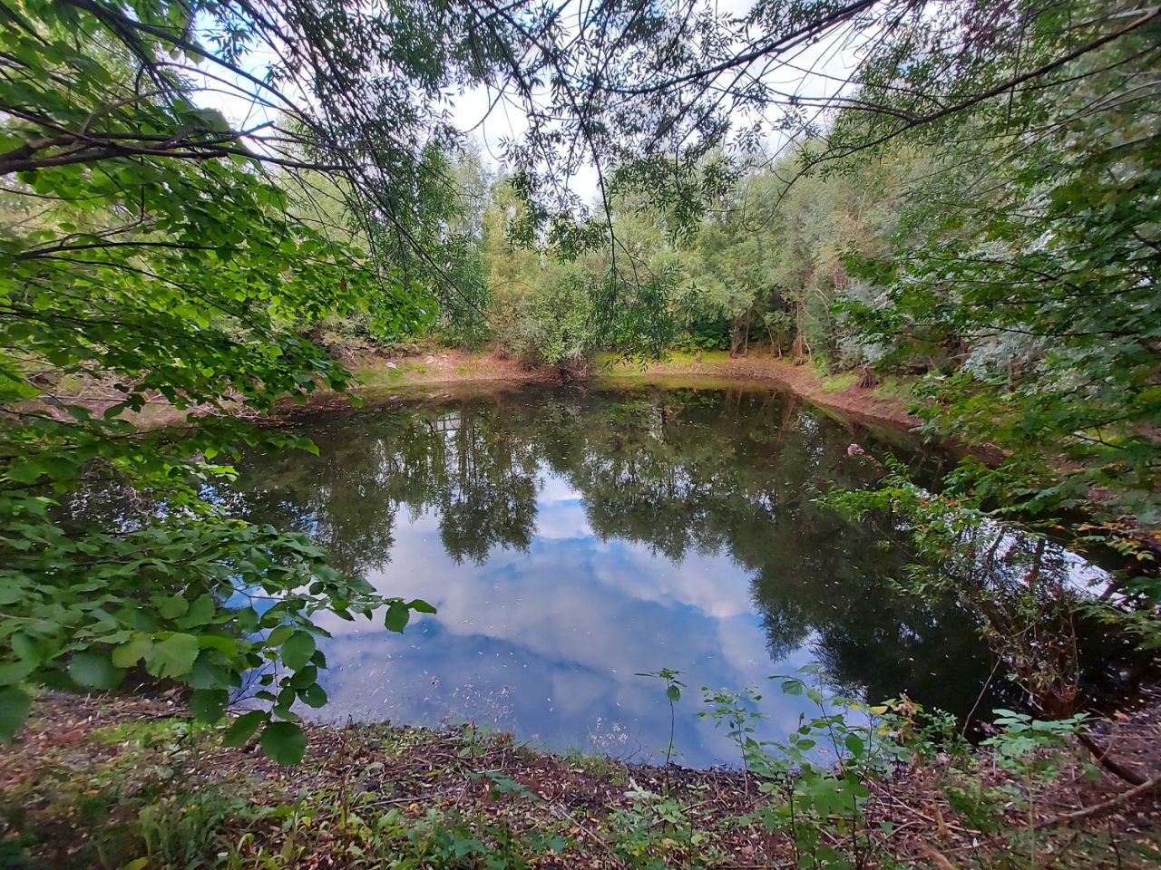 Вокруг озера высажено много растений, туи, можжевельники, барбарис.