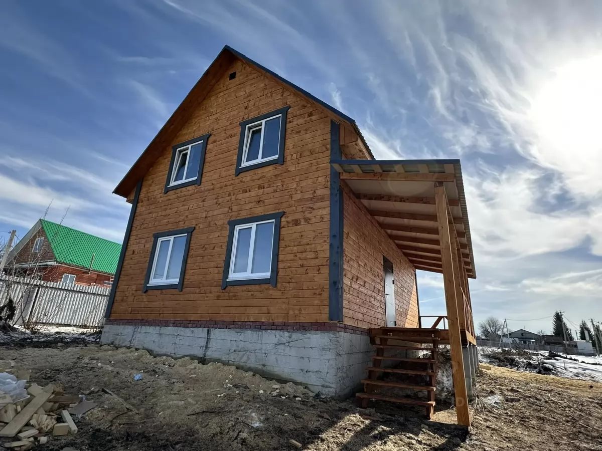 Продаётся просторный 2-этажный дом из экологического бруса хвойных пород площадью 140 кв.м. Уютный дом расположен на пригорке, по улице проложен асфальт.