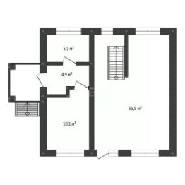 1 этаж - кухня - гостиная с выходом на террасу, спальная комната, большой сан узел, просторный холл, кладовая для хранения вещей.