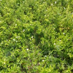 На участке растет дикая земляника, посажены саженцы, сосны.