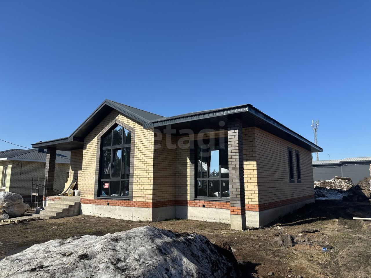 Дом построен из высококачественных строительных материалов. Материал стен: керамзитобетонный блок + утеплитель + облицовочный кирпич. Теплый пол по всему периметру дома.