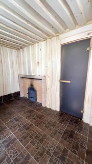 На территории гараж (керамзитоблок) +помещение свободной планировки, возможно использовать для проживания, коммуникации заведены , с/у в помещении.