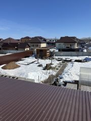 Участок полностью благоустроен: залитый двор, установлен забор и ворота. На территории расположены дополнительные постройки и заготовки: