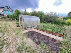 На территории участка имеется жилой, бревенчатый дом, в котором можно оборудовать летний домик или же хозблок, есть баня, колодец, теплица.