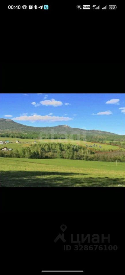 Продается земельный участок сельхоз назначения в Белорецком районе. Участок площадью 10 га расположен у подножья горы Малиновка и Кирель. Рядом водоемы: с горы родник, а по нижнему краю границы речка. Отдаленность от города Белорецк 8 км, до ж/д вокзала Белорецк (пассажирский, грузовой) 7 км.Отличный вариант для туристического бизнеса, где будут проходить маршруты "Золотое кольцо Башкирии", арендного бизнеса (А-Фрейм дома для отдыха), развития фермерского хозяйства. Подъезд к участку круглый год. По границе участка проходит электричество и газ. Участок в собственности.