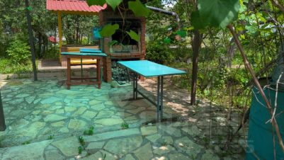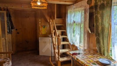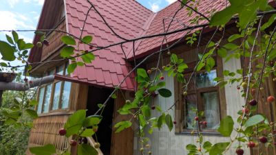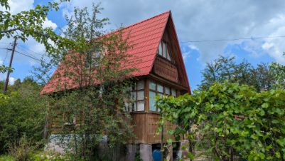 Дом из бревен, 2005 года постройки, крыша-металлочерепица, площадь первого этажа 25 кв.м , три комнаты, второй этаж мансардный, площадью 25 м2. Имеется 4 спальных места. Вся мебель и техника остается, подключено спутниковое телевидение. Отопление печное.