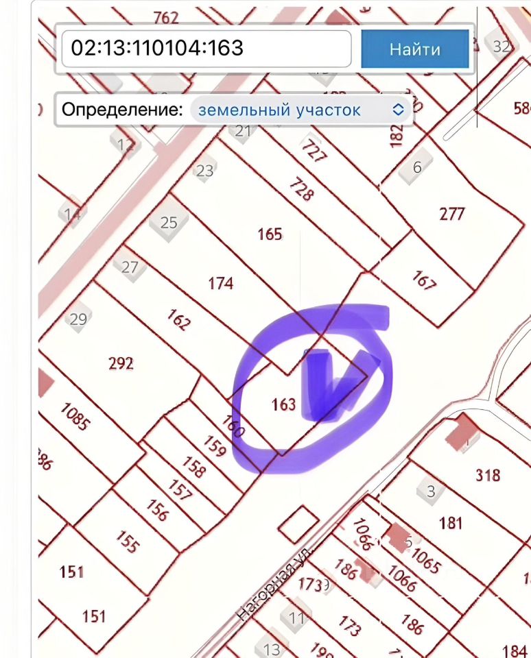Продается земельный участок в с. Пономаревка по улице Нагорная. Участок S=1533 кв.м. Кадастровый номер - 02:13:110104:163.