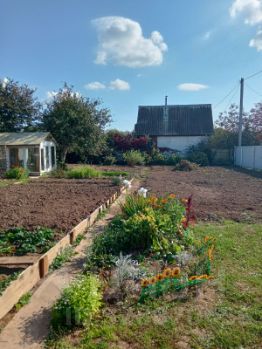 Земля ухоженная. На участке есть плодовые деревья, кусты, ягоды.2 теплицы.Ёмкость для полива на 4 куба.