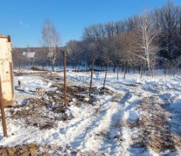 Участок со всех сторон огорожен забором. Часть ограждения уже зашита профнастилом высотой 2,2м.