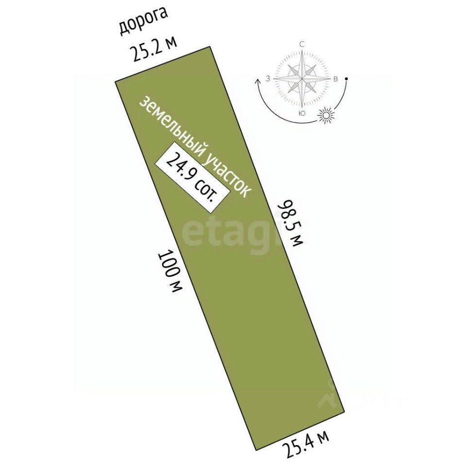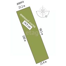 Фасад участка 25 м, длина 100 м.