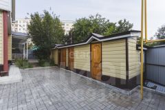 Участок выровнен, облагорожен, уложена плитка, имеется хозблок, насаждения