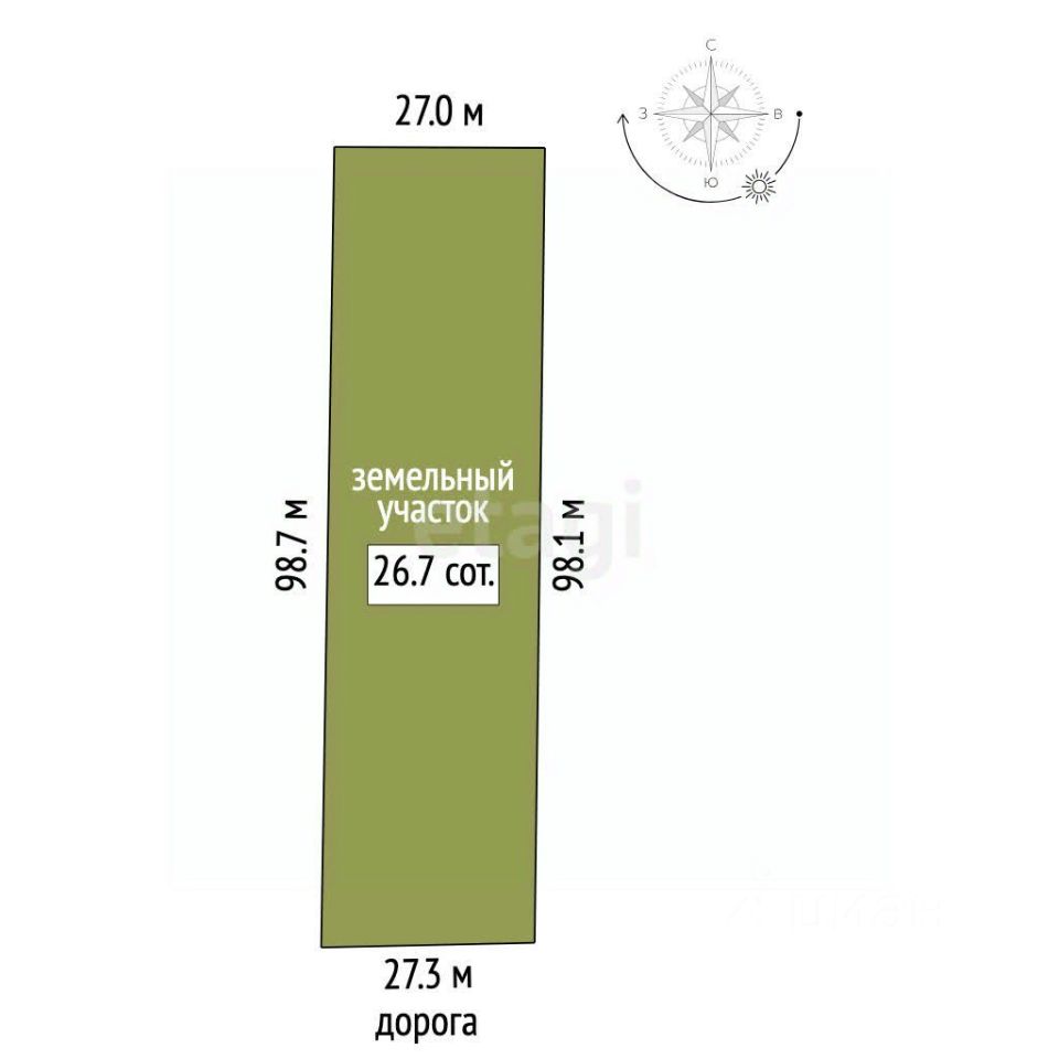 Площадь: 26 соток (ровный, правильной формы).