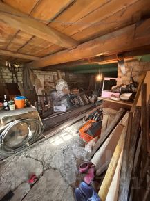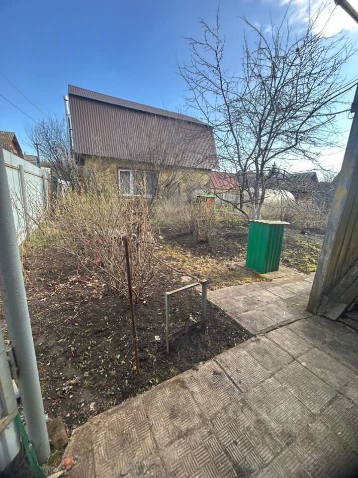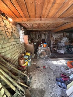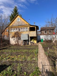 Дом построен из бревен на кирпичном фундаменте. Обшит снаружи досками. Площадь 30 кв. м. В доме печка, электричество. Под домом -гараж. В гараже инструменты, шланги. Участок 3,25 сотки. Прописка разрешена .