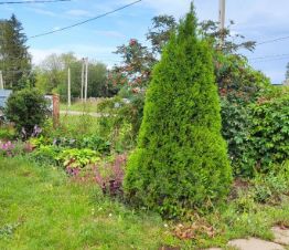 На участке много полезных и вкусных насаждений: яблони, сливы, вишни, смородина красная, белая и черная, жимолость. Перед домом лужайка с газонной травой и цветочными клумбами. К дому проложены дорожки.
