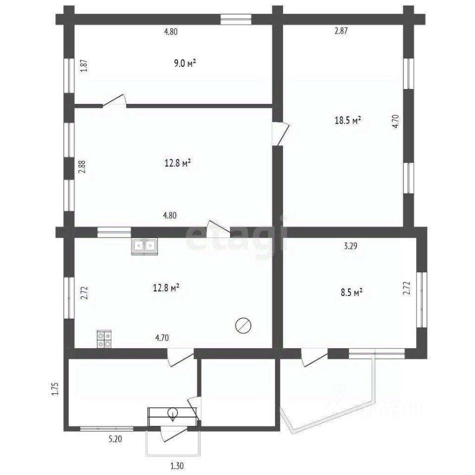 Фактическая площадь дома 100кв м рационально распределена между тремя изолированными комнатами, что обеспечивает уединение для всех членов семьи. Зал и большая кухонная зона обеспечивает комфорт и удобство при приготовлении пищи и отдыха.