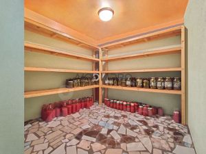 - Участок оборудован техническими распашными воротами. Гараж вмещает до 2 автомобилей, он оснащен подъемными воротами с пульта. В нем есть погреб на 7.1 кв.м., конденсата нет;