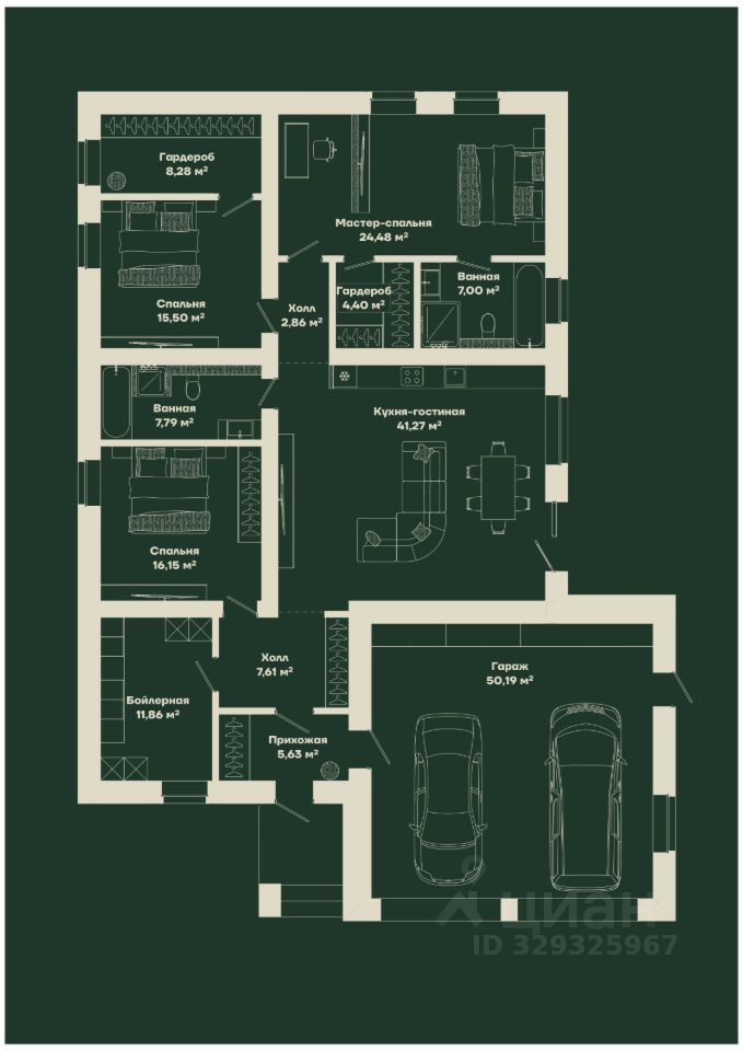 — Мастер-спальня 24,48 м²