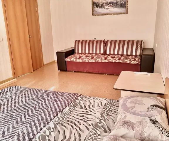 В другой комнате раздвижной коричневый диван вместимостью 2 человека (две подушки , одеяло и постельное белье )