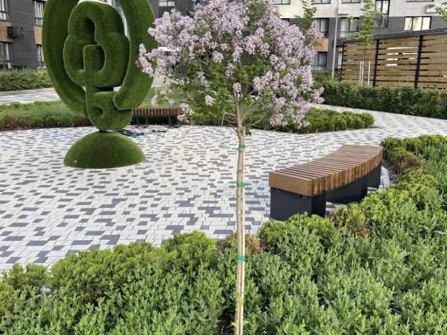 Игровая площадка, выход со второго этажа. Подземный и открытый паркинг.