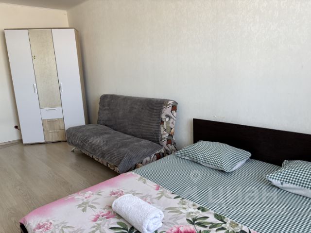 + Удобная большая двуспальная кровать с идеально-выглаженным постельным бельём из качественного материала. Также большой раскладной удобный диван. Спальных мест 4(2+2);