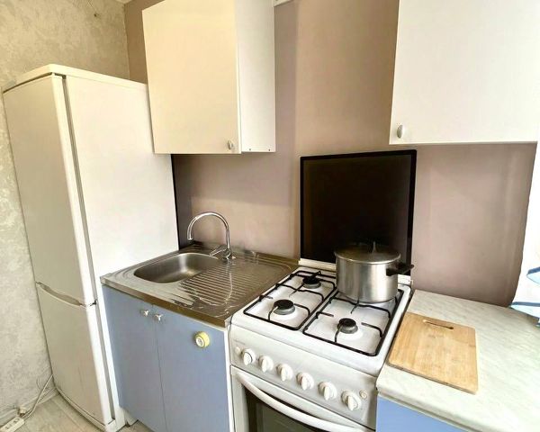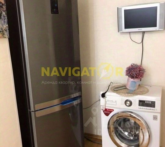 Современная мебель и бытовая техника: Кухонный гарнитур, Большой двухкамерный холодильник, Обеденный стол и стулья, двухспальная кровать, диван, стиральная машина автомат, ЖК телевизор.