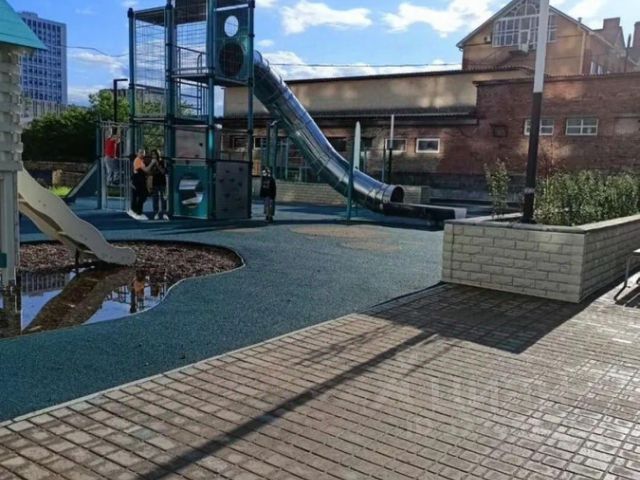 Игровая площадка, выход со второго этажа. Подземный и открытый паркинг.