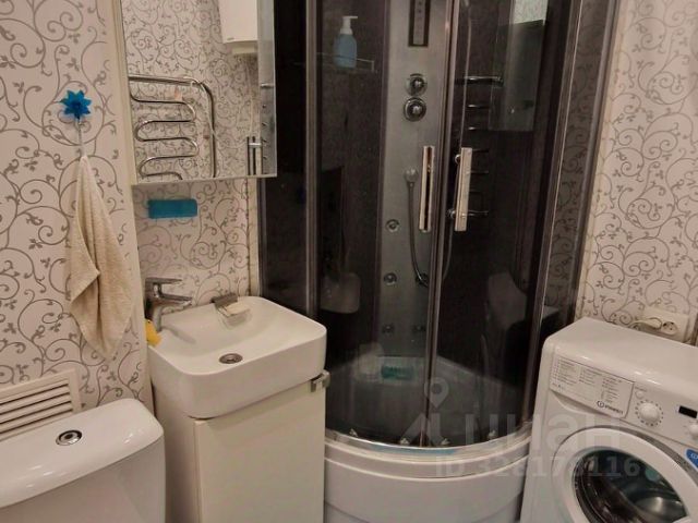 Санузел совмещенный, оформлен качественной плиткой очень приятной на ощупь, системой теплый пол, а также оснащен гигиеническим душем, стиральной машиной и душевой системой с разными режимами. В прихожей стоит комод для вещей и вешалки.