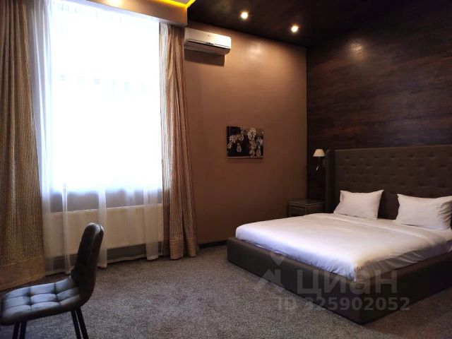 В спальне расположена двухспальная кровать, макияжный стол, смарт ТВ, умная колонка Алиса, на полу - ковровой покрытие, плотные шторы, красивая подсветка. В гостинной есть раскладной диван, качели, рабочий стол, кухонный стол, журнальный столик. Также номер оборудован: джакузи, феном, кондиционером, СВ печью, чайником с чашками и посудой, холодильником. В номере есть халаты, тапочки, косметические средства.