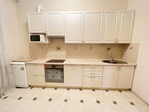 Есть вся мебель и бытовая техника: угловой диван, ЖК ТВ, тумба, торшер, кондиционер, журнальный столик, большой и вместительный шкаф, двухспальная кровать, встроенный кухонный гарнитур, электрический чайник, двухкамерный холодильник, обеденный стол и стулья, пуфик в прихожей, стиральная машина автомат.