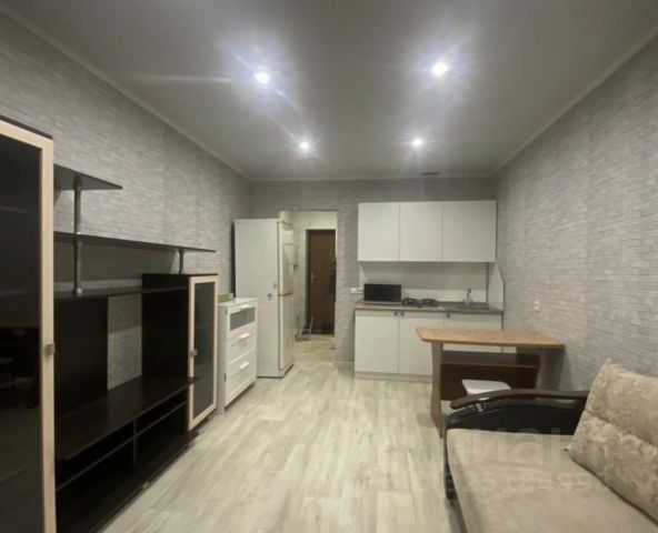 Сдается на длительный срок квартира-студия в Акварели. Мебель: кухонный гарнитур, диван, комод, шкаф, стол, табуреты, техника: э/плита, стиральная машина-автомат, холодильник. СВЧ-печь, э/чайник. В шаговой доступности ТЦ Акварин, кинотеатр, магазины, пекарни, фитнес-клуб, парикмахерские, точки выдачи товаров. Все фотографии квартиры реальные.
